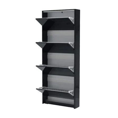 ตู้รองเท้าสไตล์โมเดิร์น หน้าบานเปิดสีเทาเข้ม ช่วยให้จัดเก็บรองเท้าหรือสิ่งของอเนกประสงค์ได้อย่างเป็นระเบียบ สามารถจัดเก็บรองเท้าได้สูงสุด 10-12 คู่